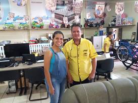 Há representatividade de aposentados no comércio, clientela muito grande, um público que paga certinho, cativo. Compram mais a linha de móveis e eletrodomésticos. Hoje tem as parcelas que facilitam a compra para eles. Vejo um impacto de pelo menos 30% das vendas ao público idoso. Por ter essa renda fixa gastam mais no comércio local do que para fora (informação oral).