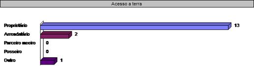Com relação à forma de acesso a terra (Gráfico 04) 13 (93%) afirmaram ser proprietários da terra, desses, 2 ainda ressaltaram que também cultivam terras como arrendatários, apenas 1 (7%) declarou que nunca possuiu terra, e trabalhou como boia-fria.
