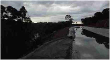 Figura 22 – Vista do canal impermeabilizado e preenchido, a direita do leito natural do rio.
