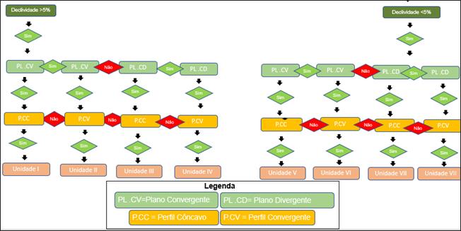 Figura 2 - Fluxograma apresentando a árvore de decisão utilizada para a definição das unidades de vertentes