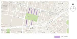 Otro caso muy notorio y que se tomó como el segundo caso de estudio, corresponde a una serie de calles privadas que se encuentran en su parte cerrada con un parque infantil llamado “Morelia 150” y por su parte abierta con dos avenidas principales de gran afluencia vehicular: Av. Camelinas y Av. Solidaridad (ver Figura 3).