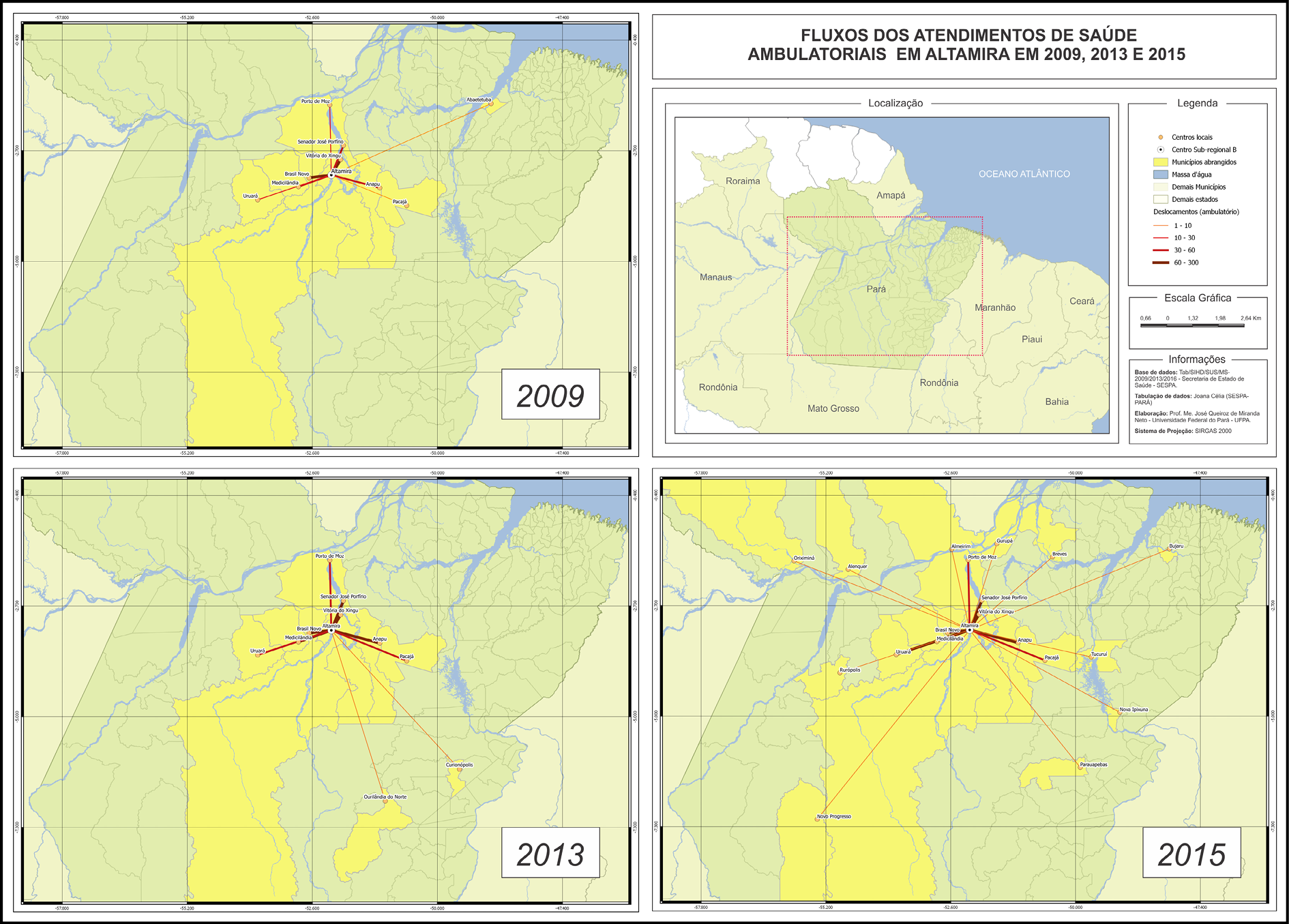 Figura 9 – Altamira. Fluxos de atendimentos de saúde ambulatoriais. 2009, 2013 e 2015