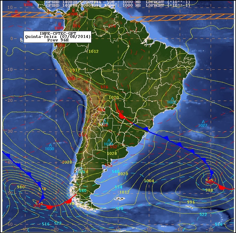 Em relação as cartas sinóticas, estas foram obtidas junto ao Instituto de Pesquisas Espaciais (INPE), a fim de auxiliar na compreensão das influências atmosféricas em alguns períodos e entender os resultados obtidos, a partir da avaliação da nebulosidade. Também foram utilizados dados das Normais Climatológicas do Instituto Nacional de Meteorologia (INMET, 2020b) dos anos de 1981 a 2010 visando entender a variabilidade habitual dos dados locais e possibilitar a comparação com os dados do ano de 2014.
