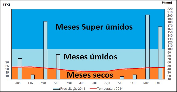 Gráfico 2 - Gráfico ombrotérmico para Viçosa-MG, no ano de 2014