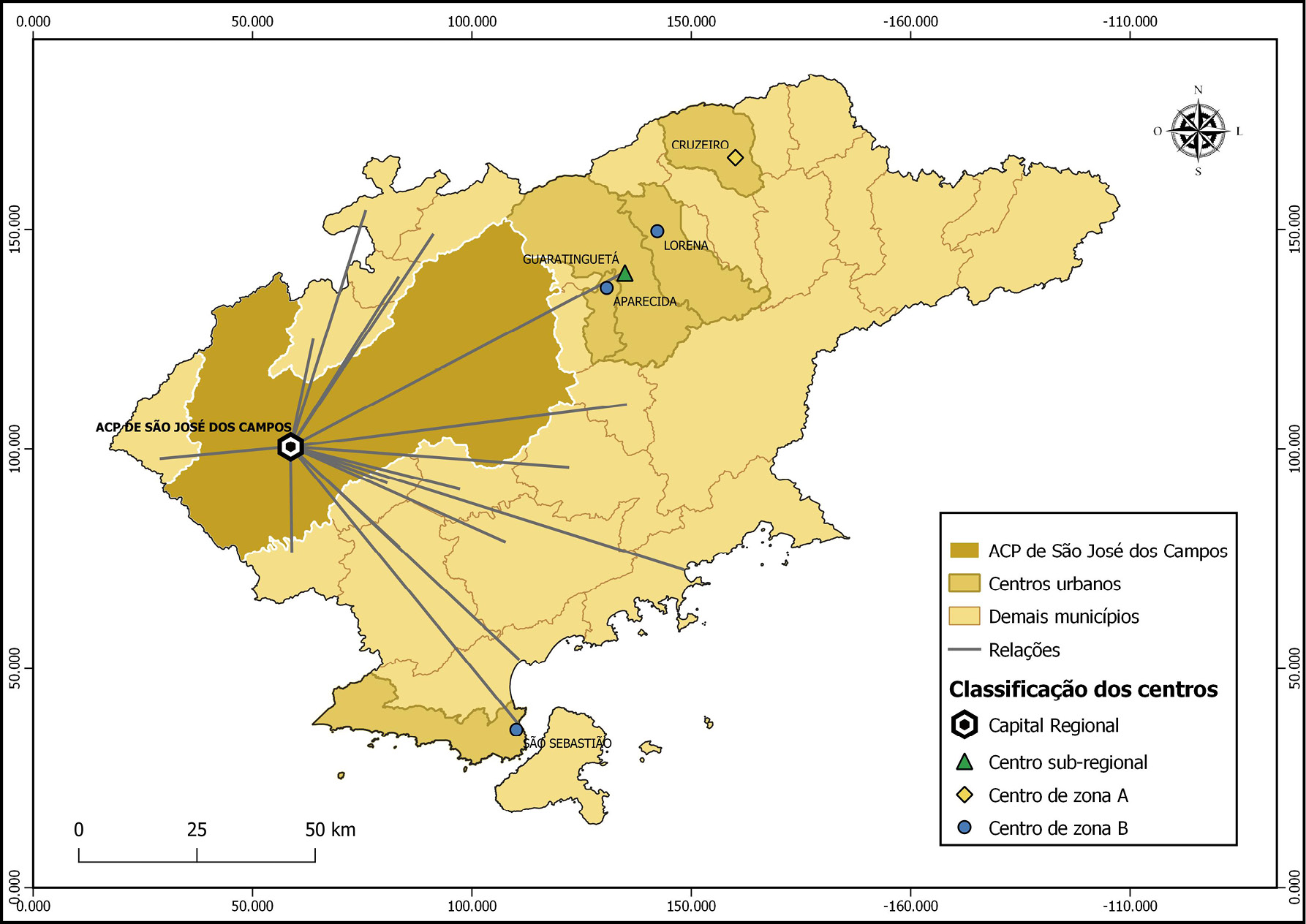 O Regic 2007 identificou os seguintes centros na RMVPLN: Capital Regional (ou seja, a ACP de São José dos Campos), Centro Sub-Regional, Centro de Zona A e Centro de Zona B, retratados na figura 5, bem como as relações entre os centros.