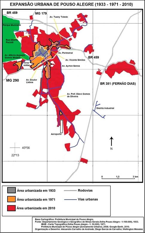 Figura 1 – Mapa da expansão urbana em Pouso Alegre (1933 – 1971 – 2010)