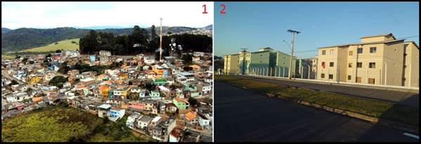 Figura 9 – Foto 1: Ocupação em áreas com topografia acidentada no bairro São João Foto 2: Conjunto habitacional no bairro São João