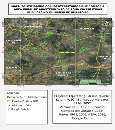 Figura 1 – Mapeamento de hidroterritórios na zona rural do município de Gurjão-PB