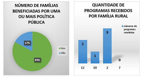 Os dados coletados mostram que algumas famílias acabaram sendo beneficiadas com mais de uma política pública em sua propriedade. Atualmente, o cenário evidencia uma melhora significativa na zona rural de estudo, tendo em vista a implementação das tecnologias de armazenamento hídrico. Essas tecnologias possibilitaram o morador rural, armazenar água da chuva por meio de cisternas provenientes do programa P1MC, conduzir mais regularmente algumas atividades no campo e na residência, com a perfuração de poços e instalação de sistemas compartilhados, pelo programa Água Para Todos, estimulou a agricultura familiar com a construção de cisternas tipo calçadão e enxurrada, que armazena cerca de 52 mil litros de água da chuva, possibilitando o plantio de hortaliças e fruteiras, em alguns casos.
