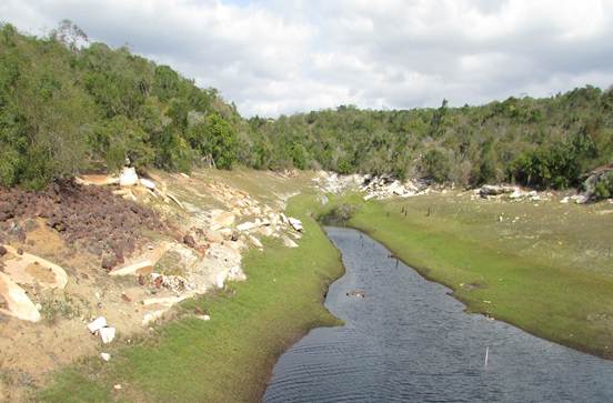Figura 15 – Exploração mineral associada ao desmatamento na margem direita do rio Caatinga do Moura, no reverso da cuesta da Serra do Tombador
