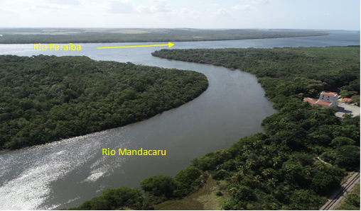 Figura 2 – Encontro do afluente (rio Mandacaru) com o rio Paraíba nas imediações da sede da FLONA da Restinga de Cabedelo (a direita)
