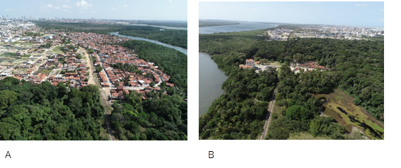 O município de Cabedelo tem uma área territorial de 29,873 km² e uma população estimada de 69.773 habitantes, o que resulta numa densidade demográfica de 1.815,57 hab./km², de acordo com o IBGE (2021). O Índice de Desenvolvimento Humano Municipal (IDHM) é de 0,748 (IBGE, 2010) e o PIB per capita de 43.115,89 reais (IBGE, 2019). Cabedelo é um município litorâneo que se limita com a capital do Estado da Paraíba – João Pessoa (Figura 1). A FLONA encontra-se inserida na bacia hidrográfica do rio Paraíba e está localizada no seu baixo curso, sendo cortada pelo rio Mandacaru, um dos seus afluentes (figura 2).