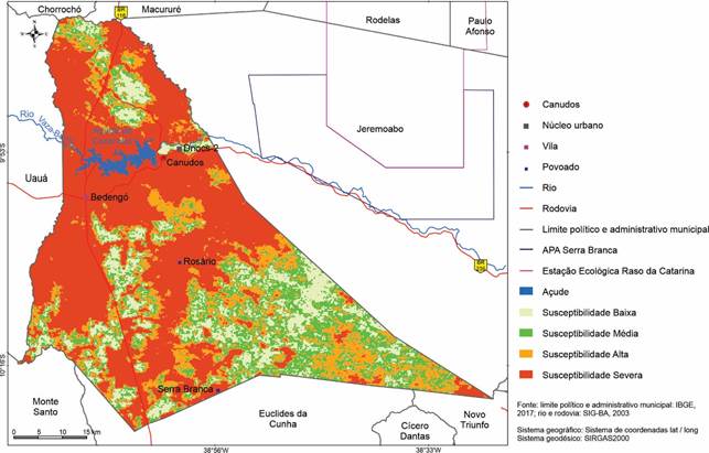 Figura 11 – Susceptibilidade ambiental à desertificação em Canudos-BA