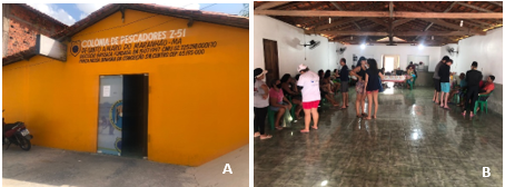 Figura 2 – Vista à COLÔNIA DE PESCADORES (A) e realização de reunião e entrevistas (B)
