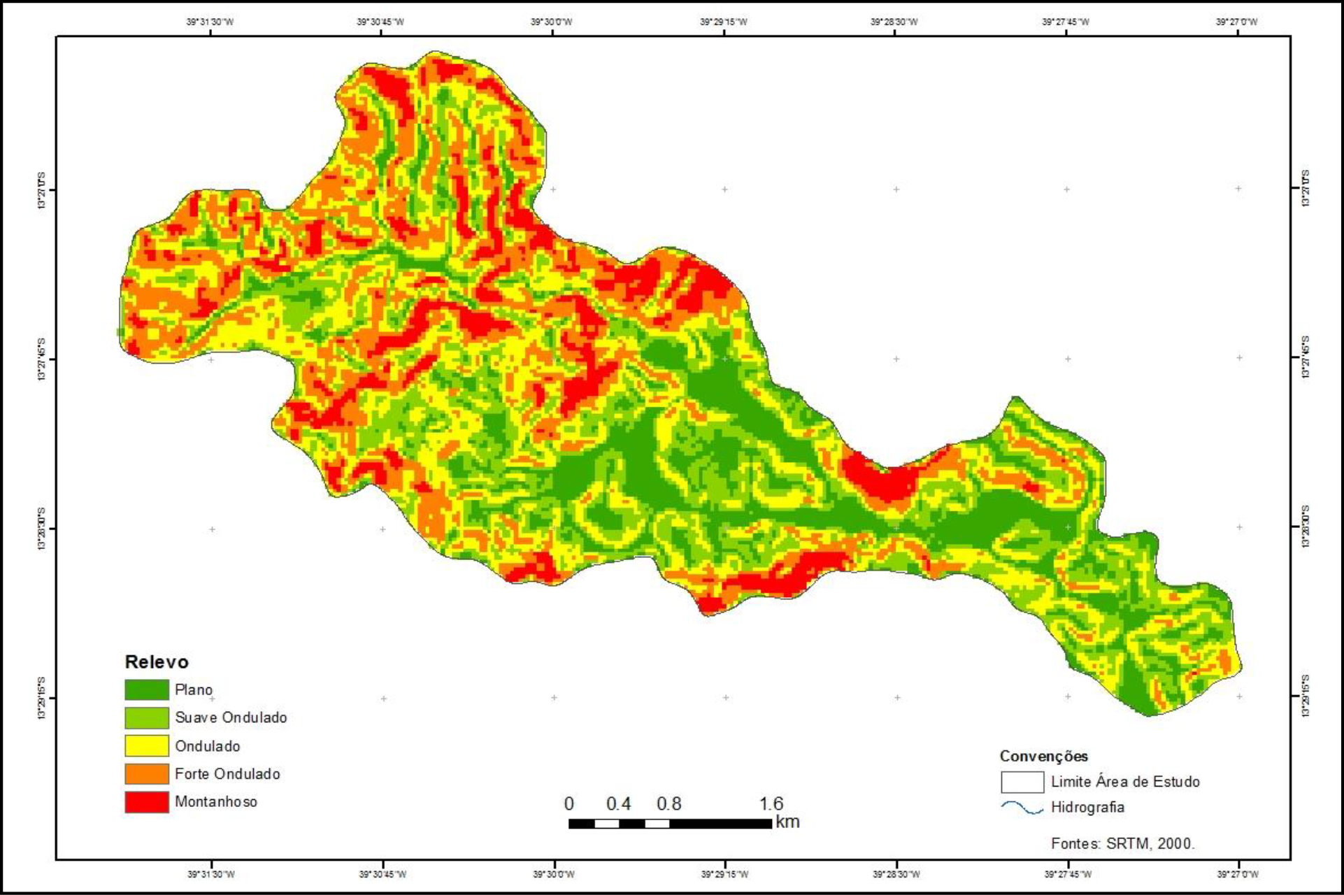Figura 5 – Classes de relevo segundo a declividade da Sub-Bacia do Riacho do Ipiranga