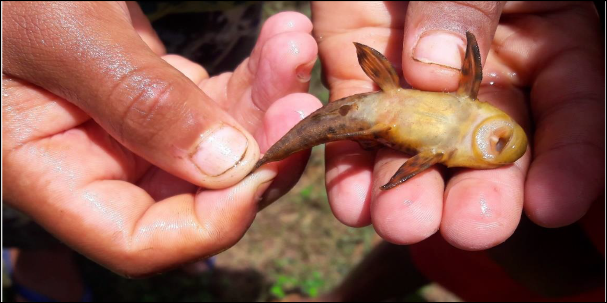 Figura 14 – Acari (peixe siluriforme da família Loricariidae) capturado por crianças que brincavam em um dos afluentes do Riacho do Ipiranga