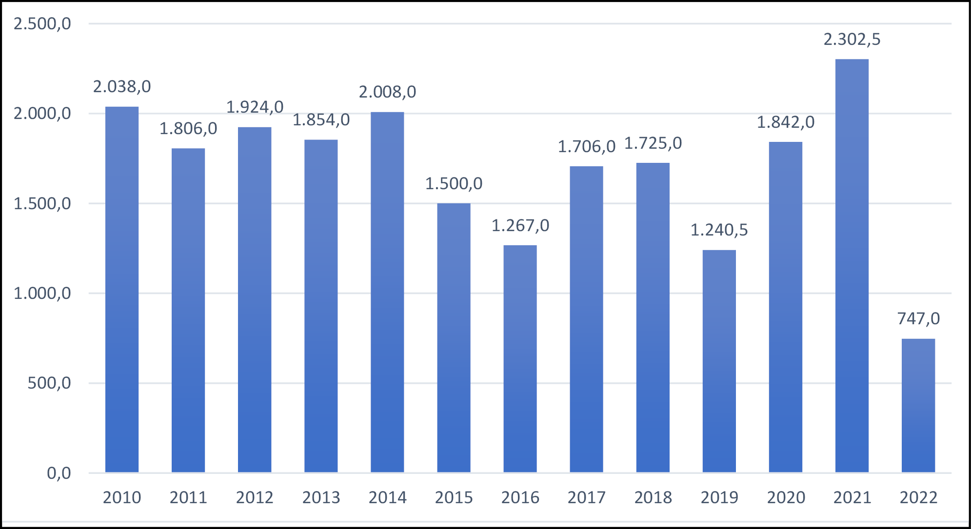 Figura 15 – Distribuição anual das chuvas (2010-2021)