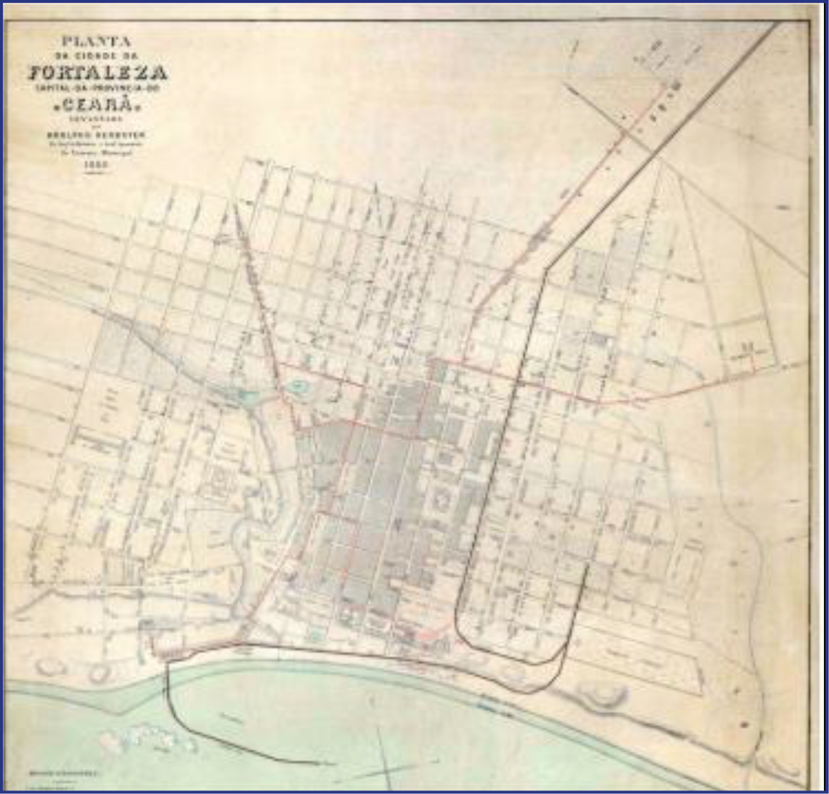 HERBSTER, A. Planta da cidade da Fortaleza capital da província do Ceará. Biblioteca Nacional Digital Brasil, 1888. 1 mapa, Col litografada, 82 cm x 80cm. Escala 1:4.400. Disponível em: https://encurtador.com.br/rBJL7. Acesso em: 26 ago. 2023.