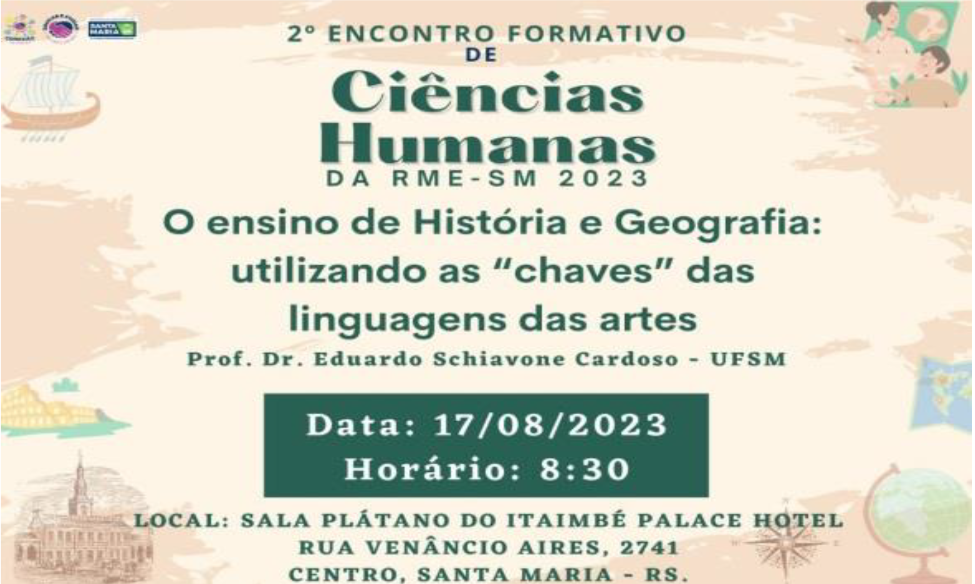 O trabalho em conjunto com a SMED de Santa Maria, consistiu no ”Encontro Formativo de Ciências Humanas: o ensino de História e Geografia utilizando as ‘chaves’ das linguagens das artes”, realizado na manhã do dia 17 de agosto de 2023.