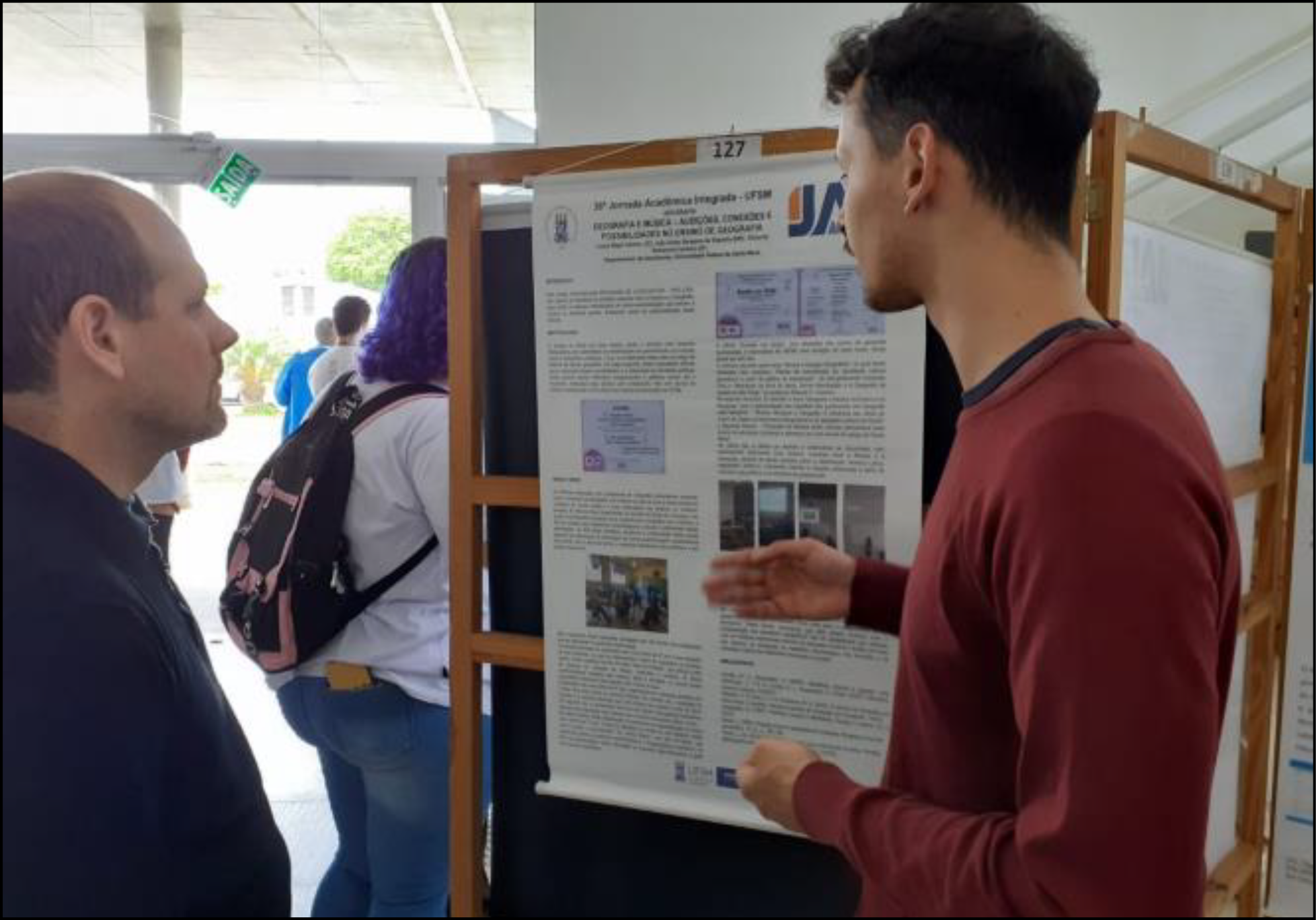 No processo de divulgação do trabalho realizado, foi publicado o resumo e apresentado os resultados preliminares sob a forma de pôster, durante a 38ª JAI - Jornada Acadêmica Integrada, promovida pela UFSM no mês de outubro de 2023 (Figura 5). A participação no evento configura uma contrapartida obrigatória para os projetos contemplados com recursos próprios da instituição em seus editais de fomento, no caso o Edital PROLICEN 2023, que objetiva a formação dos discentes das licenciaturas e o desenvolvimento de ações de incremento aos processos de ensino-aprendizagem. O projeto submetido no início de 2023 foi aprovado em sua totalidade, com o financiamento de um bolsista, durante o período de oito meses, de dedicação às atividades específicas do projeto.