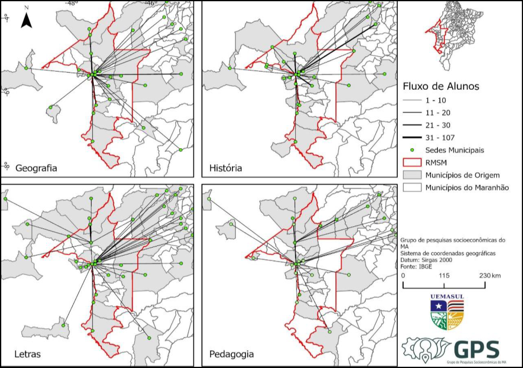 Desta forma, a presente pesquisa visou compreender a polarização da UEMASUL na rede urbana da RMSM a partir de estudantes de cursos de formação de professores. Essa abordagem permite compreender a universidade não apenas como um polo de atração de fluxos estudantis, mas também como um agente institucional potencialmente estruturante na dinâmica metropolitana regional.