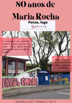 A primeira edição da revista foi anunciada em agosto de 2021 e foi desenvolvida apenas pelas integrantes do Grupo de Trabalho. Esta tinha como objetivo apresentar o que seria este projeto e convidar os(as) estudantes a participarem das próximas edições. O tema central foi a relação entre pandemia e escola, mas contava também com publicações festivas a respeito do dia do(a) estudante e do(a) filósofo(a), sobre filósofos(as) aniversariantes do mês e um convite à participação nas edições posteriores. Foi a partir da publicação seguinte que a revista contemplou criações próprias dos(as) alunos(as). Esta foi comemorativa ao aniversário de 80 anos da escola e contava um pouco sobre a origem do conceito de escola, na Grécia, sobre a história da escola Maria Rocha através de um texto e imagens, bem como um trabalho sobre arte afrofuturista desenvolvido por uma estudante e produções artísticas feitas por outra estudante.
