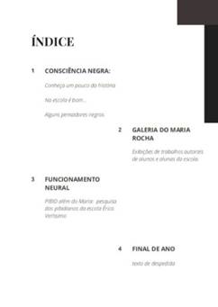 Já a terceira edição tinha como tema central o mês da consciência negra e reuniu pensadores e pensadoras importantes da luta contra o racismo. Havia também produções visuais e poemas de estudantes, a divulgação da produção de outro núcleo do PIBID - Filosofia da E.E.E.B Érico Veríssimo - sobre as influências da neuroplasticidade na educação, e por fim, a chegada das férias.