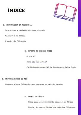 A quarta e última publicação da revista dedicava-se à importância da filosofia, onde trabalhava questões sobre a reforma do Ensino Médio. Novamente, foram abordados os(as) filósofos(as) aniversariantes do mês e dicas de filmes e livros para as férias.