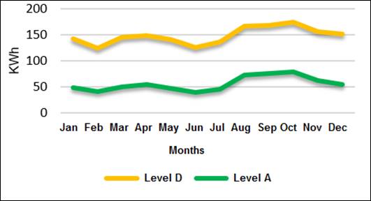 Figure 3 - Energy Consumption of Level A and D
