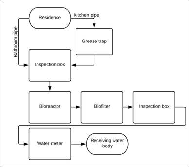 It was installed the bioreactors, biofilters, grease traps, in addition to 50-liter inspection boxes (inlet and outlet) to facilitate the collection of samples. Also, it was installed water meters to monitor the flow of the systems. Figure 2 shows the schematic used.