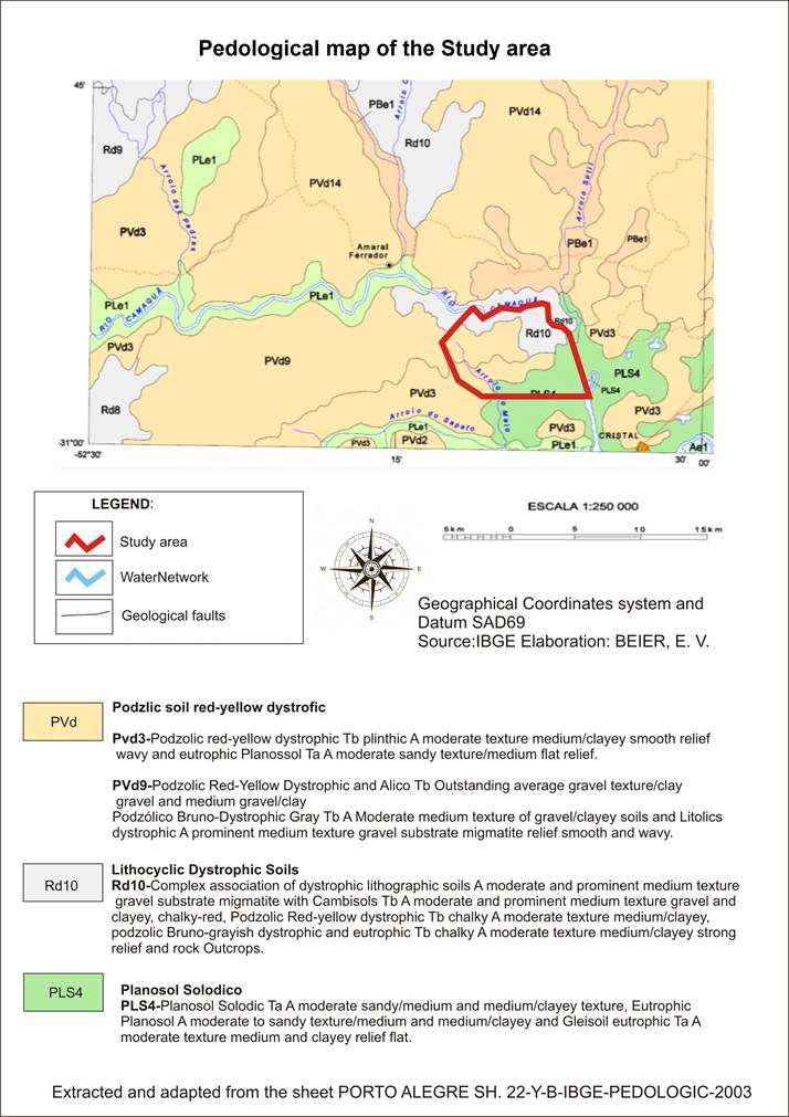 According to IBGE (2003), for the organization of the region, it is proposed the classification of dystrophic Red-yellow Podzolic soil, argisol in which the base saturation is 50% with average low fertility.