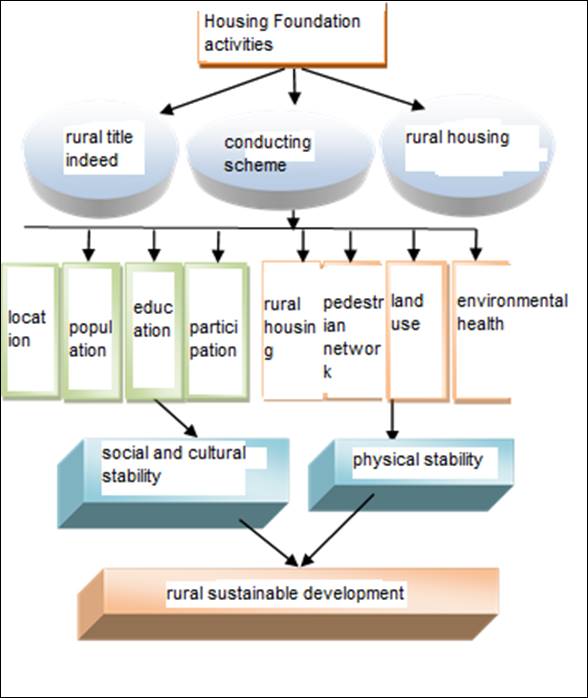 1 IntroductionDespite of the continuous decreasing of rural population in the recent decades, a remarkable population of the country lives in the rural regions. In census statistics accomplished in 2016, around 25.9% of country population lived in the rural regions. The rural regions play an important role in producing agricultural products, maintaining the environment, national economy, cultural inheritance, the continuation of urban development, political and security considerations. Having no neglect to villages and the role played by them in the national development result in aghabmandegi of developing countries and hurt them in irreparable ways (Molaee Hashtjin, 2002). Schemes and rural developed projects whether in these schemes or short-term schemes via suggested purposes and policies were accomplished to create changes, development and to achieve desirable environmental conditions (monshizade and Rastegar, 2010).Housing foundation of Islamic Republic of Iran is considered as a structure in recent years as a most important administrator and governmental body with a responsibility to reclaim villages. It is considered as a guiding structure of scheming and physical management in villages and helps rural development physically. Therefore, considering this structure in rural management is an essential different) economic, social and environmental-location) dimensions. In the rural scheming, the basic purpose is to create conditions in which it is tried to use all facilities in maximum and achieve to the assigned purposes i.e. the development of rural life (Moghadam, 1993). The impacts and results resulted from the analysis of housing foundation activities on the sustainable development of rural settlement can make impacts on sustainable development and necessary data can be provided by identifying strong and weak points to have a better management in a comprehensive and exact consideration of activities accomplished by housing foundation activities particularly in the analyzing of the effects of housing foundation activities (Anabestani, 2012).