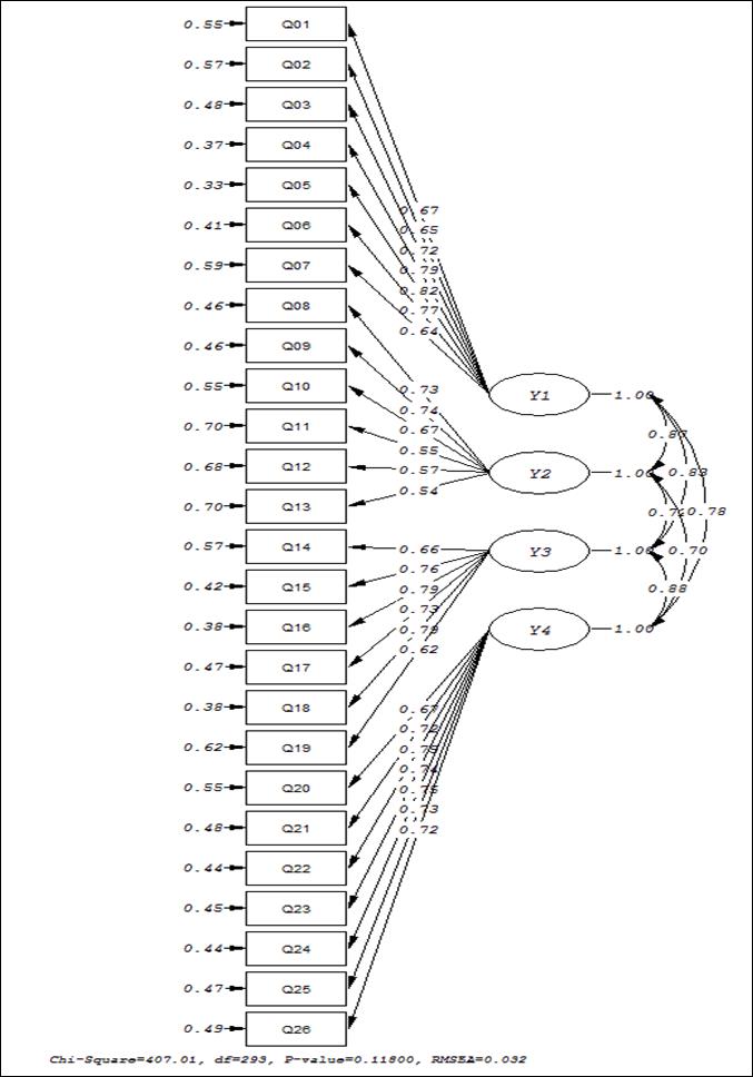 In the present study, construct validity by factor analysis using LISREL software is used to determine the validity of the research. If the factor loadings for the items were higher than 0.5, then the questionnaire has validity.