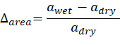 At the end of the crosslinking reaction, the membranes were left in a desiccator for 24 h. They were then weighed and measured using a precision scale (Marte, model AD500) and a digital caliper (Digimess, 150 mm). Later, the membranes were immersed in distilled water for 24 h at room temperature (23 °C). At the end of this procedure, the excess of water was carefully removed and the membranes were weighted and measured again. The mass and dimensional swelling were calculated using Eqs. (1) and (2), respectively (PANG et al., 2011):