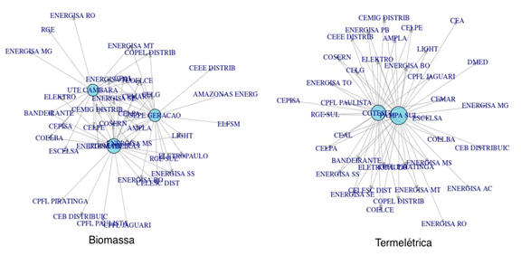 The Biomass and Thermoelectric plants (Figure 5) have a reduced number of selling agents. The SEPE generation, UTE Madeiras and UTE Cambara plants are the only companies that sell energy through biomass. The SEPE generation plant is the company with the largest number of contracted businesses.