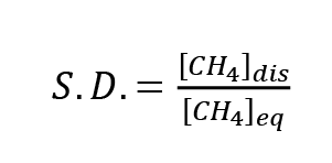 S.D. is the degree of dissolved methane saturation (dimensionless);