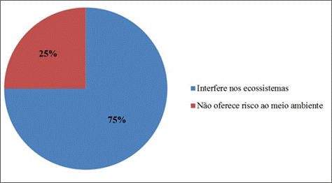 Dando continuidade ao que foi abordado na questão cinco, a sexta questão (Q6 - O local onde os rejeitos das minas são descartados oferecem riscos para a fauna e a flora?) buscava saber os riscos que os rejeitos exercem sobre a fauna e a flora da região semiárida. É possível analisar a partir dos relatos dos entrevistados que 75% têm consciência dos prejuízos causados pela mineração sobre as espécies vegetais e animais que habitam locais próximos das minas. Porém, 25% dos participantes afirmaram que os rejeitos das minas não oferecem risco ao meio ambiente (Figura 7).
