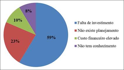 Para finalizar, a décima e última questão (Q10 - Cite as principais dificuldades para implantar métodos de recuperação de áreas degradadas pela mineração.) buscava um esclarecimento por parte dos entrevistados sobre os principais obstáculos que eles encontram para colocar em prática algumas medidas para reverter os danos causados pela mineração na natureza e constatou-se que 59% dos pequenos mineradores relataram que a falta de investimentos é o maior problema para recuperar áreas degradadas. A falta de planejamento (23%) e o custo financeiro elevado (10%) também foram destacados na entrevista (Figura 10).