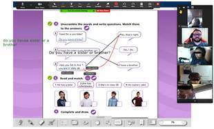 Figure 1 shows two screens seen from the student’s perspective during a meeting. The one on the left shows a grammar class about Subject-Verb agreement in English in which both teacher and learner could annotate and highlight content on the whiteboard simultaneously. The image on the right was taken during a test preparation lesson in which the student was listening to audio files played on the teacher’s computer as well as responding to questions asked by the instructor.