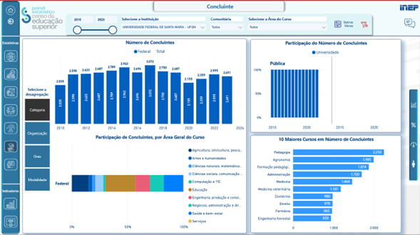 INEP – Instituto Nacional de Estudos e Pesquisas Educacionais Anísio Teixeira. Dados sobre concluintes na Universidade Federal de Santa Maria (2010-2023). Disponível em: https://www.gov.br/inep. Acesso em: 20 dez. 2024.