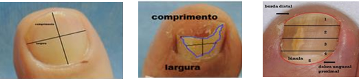 Figura 1- Determinação da área afetada pela Onicomicose e proximidade da matriz