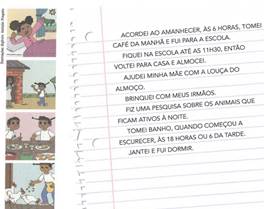 Na figura 1, para abordar o conteúdo de grandeza de tempo, Aninha descreve sua rotina. A partir deste exemplo, os estudantes são convidados a “fazer como Aninha” e elencar suas atividades ao longo do dia conduzindo-os à reflexão acerca da administração do tempo ao “reconhecer hábitos comuns ao modo de vida (...) humano, de acordo com o momento do dia.” (GOMES et al., 2014a, p. 265).