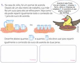 A mãe de Júlio (na figura 2 acima), mesmo cansada após uma longa jornada de trabalho ao lado do filho, aparentemente, prepara o refresco (para si e para Júlio), em uma segunda jornada de atribuições. Ela ainda necessita ser exata e dividir o suco igualmente. Desse modo, seu conhecimento matemático possibilitará que ela ainda seja justa, o que se espera de uma mãe.