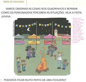 Como o material em análise foi produzido para os anos iniciais do EF, as ilustrações e personagens coloridos, animados ou familiares são elementos recorrentes, sugerindo uma tentativa de capturar a atenção e o engajamento no aprendizado (no caso de conteúdos da matemática escolar) dos alunos por meio de abordagem supostamente contextualizada que considera, também, os aspectos da vida no campo, dando, assim, a tônica das estratégias de apresentação de atividades no material.