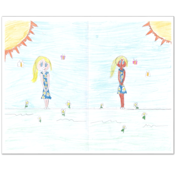 Desenho 5 – Maria, branca, 9 anos: “É uma menina branca e uma menina negra”.