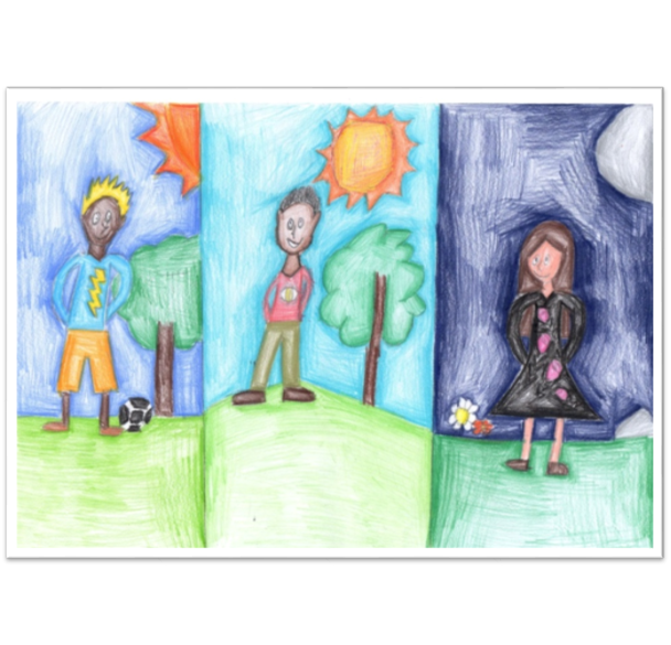 Desenho 1 – João, 9 anos, branco. “São as crianças brincando!”.