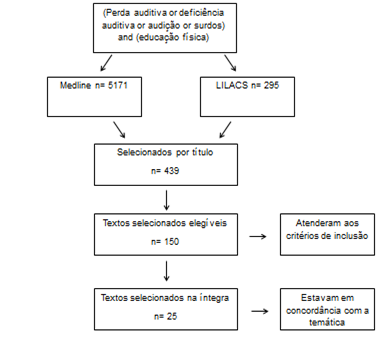 Foram identificados 5171 artigos no Medline e 295 no LILACS. Ao final das etapas de análise dos trabalhos descritas anteriormente foram selecionados 25 artigos