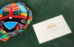 Foto 1 – Estudantes elaborando os fractais Foto 2 – Releitura da máscara com fractais