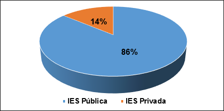 A dimensão institucional ou organizacional contemplou os aspectos referentes aos contextos onde se desenvolveram as pesquisas. A despeito da modalidade administrativa das IES diretamente envolvidas na produção acadêmica das teses e dissertações, de acordo com a Figura 5, observou-se a significativa concentração nas instituições públicas, com 93 (86%) pesquisas defendidas, sendo 71 no âmbito federal e 22 no estadual. As IES de natureza privada apresentaram somente 15 (14%) pesquisas.