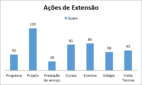 Dentre as atividades de extensão proporcionadas pelo campus, destacam-se os projetos de extensão em nível de conhecimento e de divulgação entre os discentes. Observa-se que são divulgadas, na página institucional, as ações de prestação de serviços, mesmo sendo a de menor conhecimento entre os discentes, como ação de extensão.